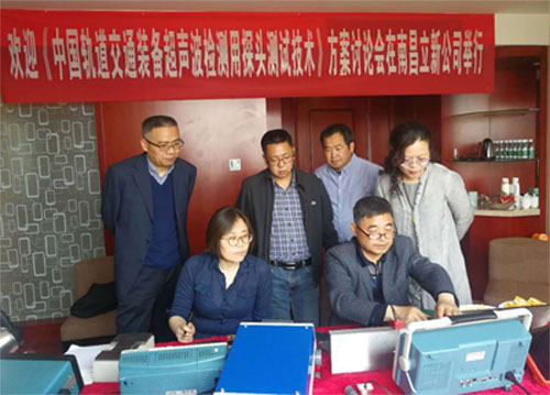中國中車超聲波探頭測試技術方案研討會,十七至二十日在南昌召開。中車首席專家萬升云教授帶領資深專家組的賈敏教授及段怡雄、石勝平、尹麗等親臨指導,并圓滿完成標準文件在實際工作中落實等相關事宜,同時,對南昌立新電子研發的具有世界領先技術的雙晶聚焦探頭進行了測試確認,肯定和強調核心科技對我國高端制造的重要意義,理解立新電子為知識產權所采取的保護措施,希望南昌立新電子的工程師們繼續努力,為我國無損檢測事業做出更大貢獻!